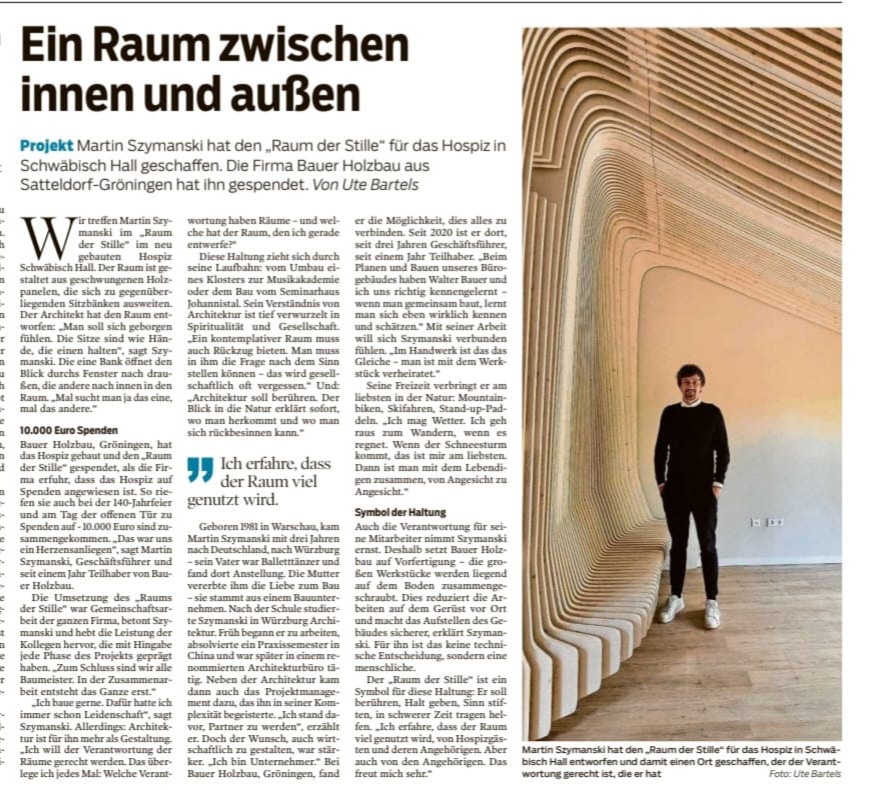 Bericht von Ute Bartels über Martin Szymanski, der unseren "Raum der Stille" geschaffen hat